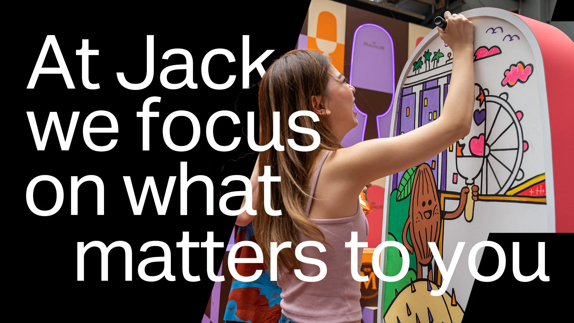 With the Chief Creative Officer, I developed a bold new design for our agency’s Pitch Deck to new clients. The design uses unique shapes derived from the words “JACK” and heroes the people that experience our activations. The deck is used globally to assist in winning multimillion dollar pieces of business.